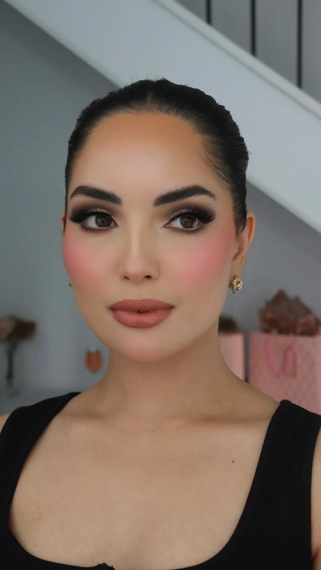 She looks absolutely beautiful in this pinky peachy tones. She requested a soft cut crease look with a soft brown shadow eyeliner.